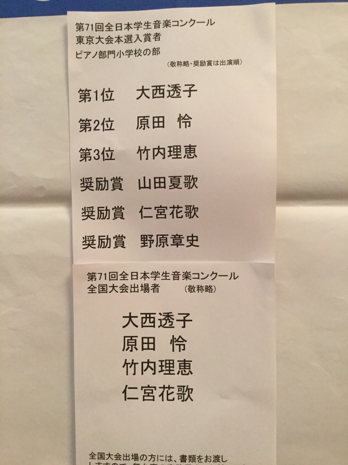 この翌日、なんと本選第一位を頂き、A2級入賞者記念(未就学児は全国決勝ではなく表彰演奏会に出演します)に出演が決まりました。